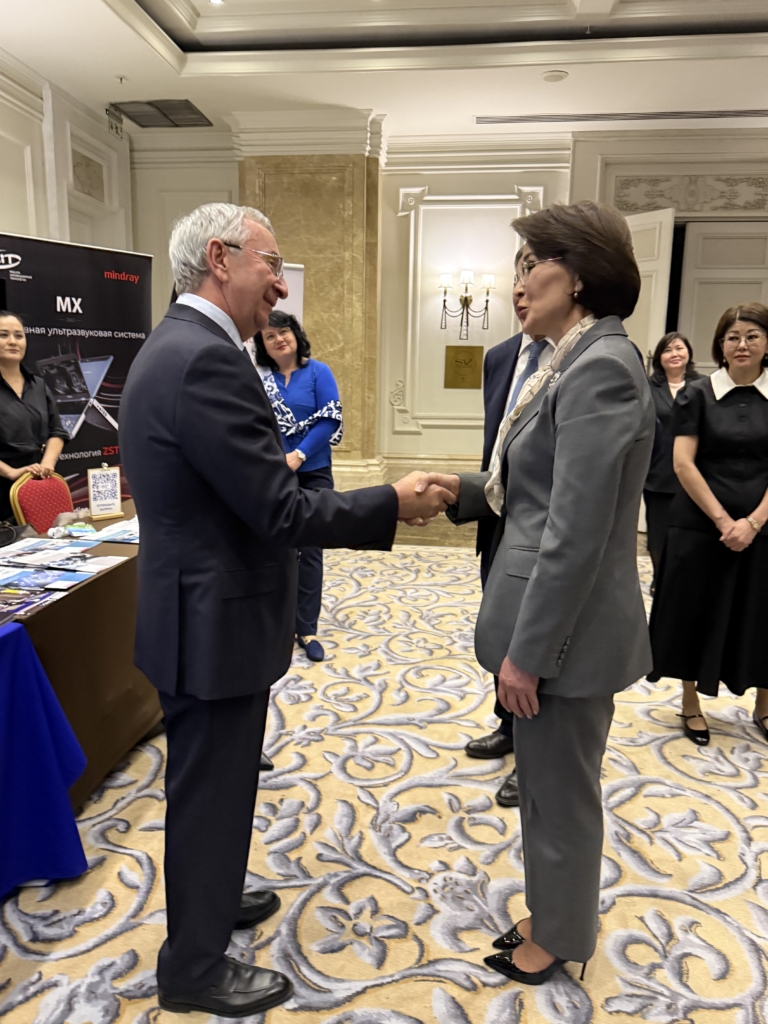 As part of the exhibition, MIT presented advanced solutions, including Elekta linear accelerators designed for high-precision radiation therapy. The Minister of Healthcare of the Republic of Kazakhstan, A. Sh. Alnazarova, visited the company’s stand and showed strong interest in technologies capable of significantly improving the quality of cancer care in the country.